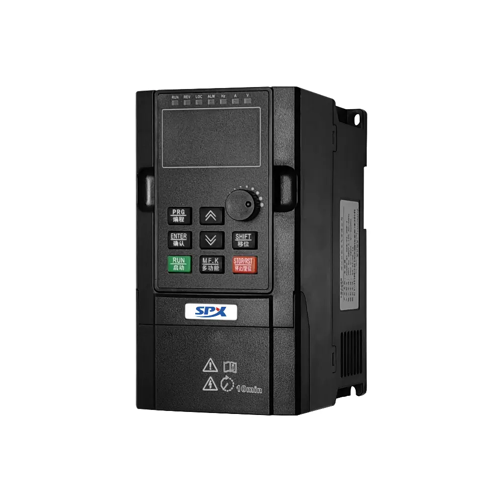 SPX AC-frequentieomvormer van hoge kwaliteit VFD Driefasig naar eenfasig In werkplaatsen, familieboerderijen, oude winkels of afgelegen locaties kan een typisch elektrisch dilemma worden opgelost: er is ter plaatse alleen een eenfasige stroomvoorziening van 220 V, maar de kernapparatuur die moet worden aangedreven (zoals waterpompen, ventilatoren, werktuigmachines) is een standaard driefasige 380 V-motor. Traditionele oplossingen (motoren vervangen, faseomvormers installeren) hebben vaak hoge kosten, een laag rendement of een beperkte functionaliteit. Het is niet alleen een frequentieomvormer, maar ook een intelligente "power-translator" en "power optimizer", die fundamenteel de mogelijkheid reconstrueert om elektriciteit te verkrijgen en te gebruiken.